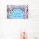 A berry sweet baby is on the way! Blueberry and strawberry fruit with a blue and white chequerboard pattern and trendy arch