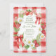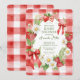 Celebrate the arrival of your little one with our Berry Sweet Baby Shower Invitation, a delightful blend of charm and elegance. This invitation features a whimsical designed frame adorned with white daisies, vibrant red strawberries, and lush green leaves, adorned with red croquette bows. Set against a red gingham background, it perfectly captures the joy and sweetness of your upcoming celebration. Invite your loved ones to share in this special moment with a touch of playful sophistication.