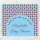 A berry sweet baby is on the way! Blueberry and strawberry fruit with a blue and white chequerboard pattern and trendy arch