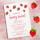 Berry sweet strawberry birthday invitation with red fruit and chequerboard style background.