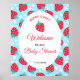 Berry Sweet Blue Strawberry Baby Shower Welcome Poster