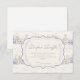 A sweet vintage-inspired design featuring delicate blue bows, soft striped detailing, and charming blueberry garden illustrations. Toile-style artwork with adorable animals and fruit baskets creates a classic storybook feel in a soft powder blue palette. The ornate central frame adds elegance while keeping the overall look light, refined, and timeless. Perfect for a baby shower with a gentle garden theme and a touch of traditional charm.