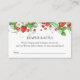 This diaper raffle card design features a patch of strawberries, white flowers and greenery and a strawberry seeds background on the reverse side.
