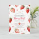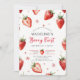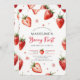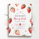 A berry sweet farmhouse chic watercolor 1st birthday invitation featuring simple watercolor strawberries and whimsical flowers along a soft border. The title, “Berry First,” is written in cute modern calligraphy for a playful touch. Perfect for a girl’s first birthday, strawberry theme party, or spring and summer celebration with a sweet rustic farmhouse feel.