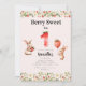 Celebrate a "berry" special first birthday with this adorable invitation! Featuring sweet watercolor bunnies, a large strawberry '1', and a charming floral border filled with strawberries and daisies, this design is perfect for a whimsical celebration. The soft pink background and delightful imagery create a warm and inviting atmosphere for your little one's big day. Make it a memorable event with these charming invitations that are sure to delight your guests.