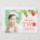 Berry Sweet Red Strawberry 2nd Birthday Girl Photo Invitation