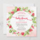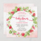 Berry sweet strawberry baby shower invitation template, watercolor strawberry wreath, light pink background.