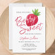 This girl's strawberry-themed baby shower invitation is decorated with a simple red watercolor strawberry and it says Berry Sweet in elegant script typography.