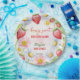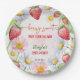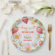 Berry sweet strawberry baby shower personalised monogram printed paper plates template, summer garden strawberry berry themed baby shower plates strawberries and daisies garden theme personalised table decor