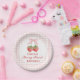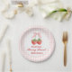 Berry Sweet strawberry birthday Pink Bow Gingham Paper Plate