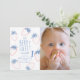This cute "berry sweet" girl's 1st/first birthday photo invitation features a white background with strawberries in light pink. The reverse side features a light blue background with hand-painted check patterns in pink. Personalise for your needs. You can find more matching products at my store.