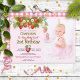 Sweet and summery strawberry picnic theme little girl's birthday party invitations. Featuring lovely watercolor strawberries & flowers and a photo template for the birthday girl's image. Classic pink and white checked picnic table "cover" on the reverse.