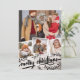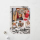 Double sided Christmas photo card with a photo collage of four photos - one larger and three smaller in square white frames - against white wood grain. Merry Christmas is written in a bold script and surrounded with black berry twigs. On the back, add a Christmas greeting along with your names.