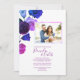 Gradient blue, purple, pink, violet roses are beautiful with matching photo framing and script writing. Floral invitation design is versatile for purple, pink, royal blue rose themes. Garden roses are perfect for any season.