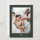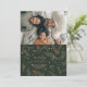 A beautiful Christmas card design featuring hand drawn foliage and scattered berries in traditional green and red hues with an elegant script and classic serif font. The front of this design has one photo and the back has larger photo with a line of editable text. This design template uses 2 total photos. Please see the other designs in this collection for other layouts that use more or less photos. Thank you!