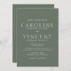 Elevate your wedding stationery with the BERYL Formal Green Wedding Invitation, where timeless elegance meets modern simplicity. This refined design features a rich olive green background beautifully contrasted by crisp ivory serif typography. Its clean layout and spacious lettering create a sophisticated atmosphere—perfect for couples planning a classic, upscale celebration.