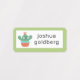 Cactus clothing stickers for your kids with cute cacti sitting in flower pots and wearing glasses. Each cactus has a flower on its head like a little prince crown. The sticker labels have borders in teal and green.