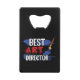 Honour the creative visionaries with our "Best Art Director" Credit Card Bottle Opener. This sleek and practical tool is perfect for any art director who values both aesthetics and functionality. Keep this unique opener in your wallet and celebrate artistic excellence with every bottle you open.