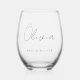 Give the best aunt ever a gift she will love with this chic custom stemless wine glass, showcasing her name monogrammed in a stylish calligraphy script and "Best Aunt Ever" in elegant typography. Personalise whether she is called Auntie, Tia, etc. If needed, edit in the design tool to increase or decrease the script size for longer or shorter names.
