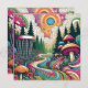 Wishing you the best birthday by par. Disc golf themed birthday card for her. A unique colourful disc golf course in a field of retro mushrooms, pine trees, colourful swirling cloud, sunshine in vintage colours like blue, green, pink and orange.