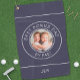 You can easily create your own golf towel with our simple template. Just upload your favourite photo and add initials, name, or any text you like. You can also pick the colours of the text and the background to suit your bonus dad’s taste. The photo and the text are printed in white with two circular white borders, which stand out against the solid dark blue background.