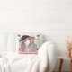 Modern, trendy accent pillow for your bonus mum with a photo you can personalise on the front, held up fridge-magnet-style from the corners by four hearts, and the customisable text "BEST BONUS MOM EVER!" Great gift for your stepmom / foster mum / second mother on Mother's Day or for her birthday. Note that you can also personalised this photo pillow for your favourite aunt, your grandma, etc. On a light pink background.