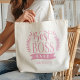 Surprise your boss with this personalised tote bag! This tote is the perfect gift for a special boss and features the phrase “Best Boss Ever.” It’s ideal for carrying all her essentials. Simply click on 'personalise this design' to add her name, and Zazzle will take care of the rest!
