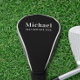 An elegant black golf head cover for a golfer brother featuring his name monogrammed in classic white serif typography and "Best Brother Ever" in simple modern white typography.