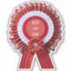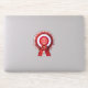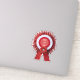 A colourful sticker, cut to shape, featuring a red and white rosette with 'Best Cat Dad' accolade.