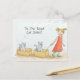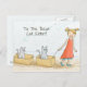 To The Best Cat Sitter! All text can be customised. A cute little girl in a red dress, walking two grey cats with blue eyes in boxes by pulling them with a string. Unique cat walk. Sweet cat pet cartoon illustration drawing by Donna Leger.