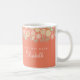 Chef personalised vintage rustic country chic kitchen coffee mug featuring delicate blush pink, peachy cream, and sage green floral botanical wildflowers borders on a coral orange (changeable) background. +++++++++++++ It can be a beautiful keepsake personalised gift for a cooking gourmet lover, for an anniversary, birthday, Christmas, a bridal shower, or a wedding gift.