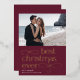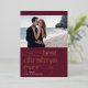 Share the news of your holiday season engagement with these elegant and festive engagement announcement cards featuring a single horizontal or landscape orientated photo with "best Christmas ever" beneath in gold foil lettering on a rich holiday plum background. Personalise with your announcement (shown with "we're engaged") and names beneath, and add additional details to the back.