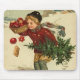 This is a vintage postcard of a boy gathering Christmas Decorations.