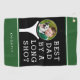 Personalised golf towel for the golfer Dad with the suggested editable funny golf saying BEST DAD BY A LONG SHOT (or change to your custom text) in an editable black, green and white colour scheme with a white golf ball on a tee photo frame for your picture. Great gift for a Dad's birthday, Father's Day or a holiday. PHOTO TIP: Choose a photo with the subject in the middle or pre-crop into a square shape BEFORE uploading and use the CROP tool by clicking on EDIT USING THE DESIGN TOOL in the PERSONALIZE section where other changes like colours and text changes can be made. ASSISTANCE: For help with design modification or personalisation, colour change, resizing or transferring the design to another product, contact the designer BEFORE ORDERING via the Zazzle Chat MESSAGE tab below or email makeitaboutyoustore@gmail.com.