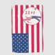 NewParkLane - Golf Golf Towel, with a little golf player in silhouette coloured with the stars and stripes of the American Flag, and a funny quote 'Best Dad by Par', in red typography, against the v=background of the US flag. A great all American birthday or Father's Day gift for any dad who loves playing golf !