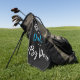 Modern Best Dad By Par Golf Towel. Design featuring calligraphy script in white and blue ''Best Dad By Par'' on a black background. Perfect as a gift for golfer dad for fathers day, Christmas , birthday etc