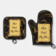 Best Dad By Par Modern Calligraphy Leafy Swirl Fun Oven Mitt & Pot Holder Set