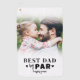 This personalised golf towel is a thoughtful way to honour the "Best Dad By Par." The design features a bold mix of typography with black script and serif fonts for a clean, heartfelt message. White gradients appear at both the top and bottom, gently fading into your chosen photo. The image can highlight a special moment—whether it's Dad with his kids, the gifter, or another favourite memory. A small heart adds a sweet touch, along with space for a child’s name. If gifting from multiple kids, you can adjust the message to say "love your kids" or reposition the heart to suit your layout. A meaningful gift for Father’s Day, birthdays, Christmas, or just because—perfect for any dad who loves time on the green.