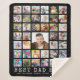 Remind him he's the BEST DAD EVER year-round with this keepsake photo collage blanket personalised with your custom text. The design features an easy-to-upload photo collage template with 39 square pictures of your favourite photo memories of Dad against an editable black background colour. CHANGES: You can change the background colour or text font style, size, colour and placement by clicking on EDIT in the PERSONALIZE section. ASSISTANCE: For help with design modification or personalisation, colour change, resizing or transferring the design to another product, contact the designer BEFORE ORDERING via the Zazzle Chat MESSAGE tab below or email makeitaboutyoustore@gmail.com.