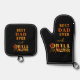 Recognise the BEST DAD EVER and GRILL MASTER with this oven mitt, pot holder or the set grilling or barbeque accessories featuring fire and flames typography and text and background colours of your choice. Makes a fun gift for a father's birthday, Father's Day or a holiday. ASSISTANCE: For help with design modification or personalisation, colour change, transferring the design to another product or you would like coordinating items, contact the designer BEFORE ORDERING via the Zazzle Chat MESSAGE tab below or email makeitaboutyoustore@gmail.com.