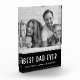 This modern and simple design says "best dad ever" in vintage look white text in a minimal black frame border, with a spot to add your father's name and a family photo.
