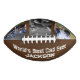 Custom fathers day football gift featuring a 3 family photo collage, the text "World's best dad", the dad's name, the kid's names, and the year. Rustic Rough Text Design With Brown Colour.