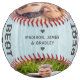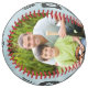 Best Dad Ever Custom Photo Personalised Name Softball features two of your favourite photos with the text "Best Dad Ever" in modern grey script and your custom text in the centre on a blue wooden background. Personalised by editing the text in the text boxes provided and adding your photos. PHOTO TIP: edit your photos prior to uploading to Zazzle with the subject in the centred. Designed by ©Evco Studio www.zazzle.com/store/evcostudio