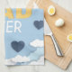Happy Father's Day cute design, best dad ever yellow text with crown, among white clouds and blue hearts in the sky, 3d paper cut cartoon