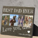 BEST DAD EVER bold white typography on dark green military chalkboard Happy Father's Day personalised plaque with your 4 photos, your text, and your signature.