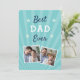 Celebrate a beloved dad this Father's Day with this cool photo card design that features two favorite photos with the phrase "best Dad ever" in white and blue lettering on an aqua background. Add a custom pre-printed message to the reverse side.
