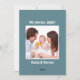 Best Dad Ever Father's Day Grunge Typography Photo Holiday Card. A modern, bold Father's Day design with distressed typography, two postage stamps with hearts, and a light purple to light blue gradient background. Add your favourite photo to the back of the card and customise the message.