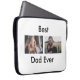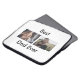 This laptop sleeve looks exactly as it does in picture. I actually thought is was too small until I put my laptop in it. It's a bit snug, but it fits. Figure it will stretch a bit, hopefully seams hold. Them seem good for now. I didn't have any personalization done, looks great as is.