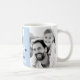 Father's day mug featuring 2 custom photos and the text "Best dad ever". Modern design in white and two shades of blue.