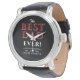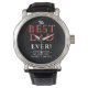 Best Dad Ever Modern Black and White Typography Father`s Day Watch. The design has modern typography in white and red colours on black background. Personalise with your names.
